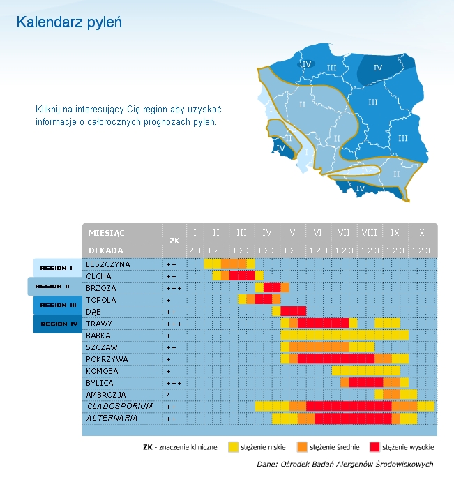 Rozpoczął się sezon pylenia brzozy. W okresach rozpogodzeń stężenie pyłku brzozy będzie wysokie i bardzo wysokie na zachodzie kraju i średnie na pozostałym obszarze. Opady oczyszczają powietrze z pyłku roślin oraz zapobiegają uwalnianiu do atmosfery nowych ziaren pyłku z pylników, przynoszą tym samym ulgę alergikom. Jednak już po 1-2 godzinach od zakończenia opadów, szczególnie przy wietrznej pogodzie stężenie pyłku roślin stopniowo wzrasta.